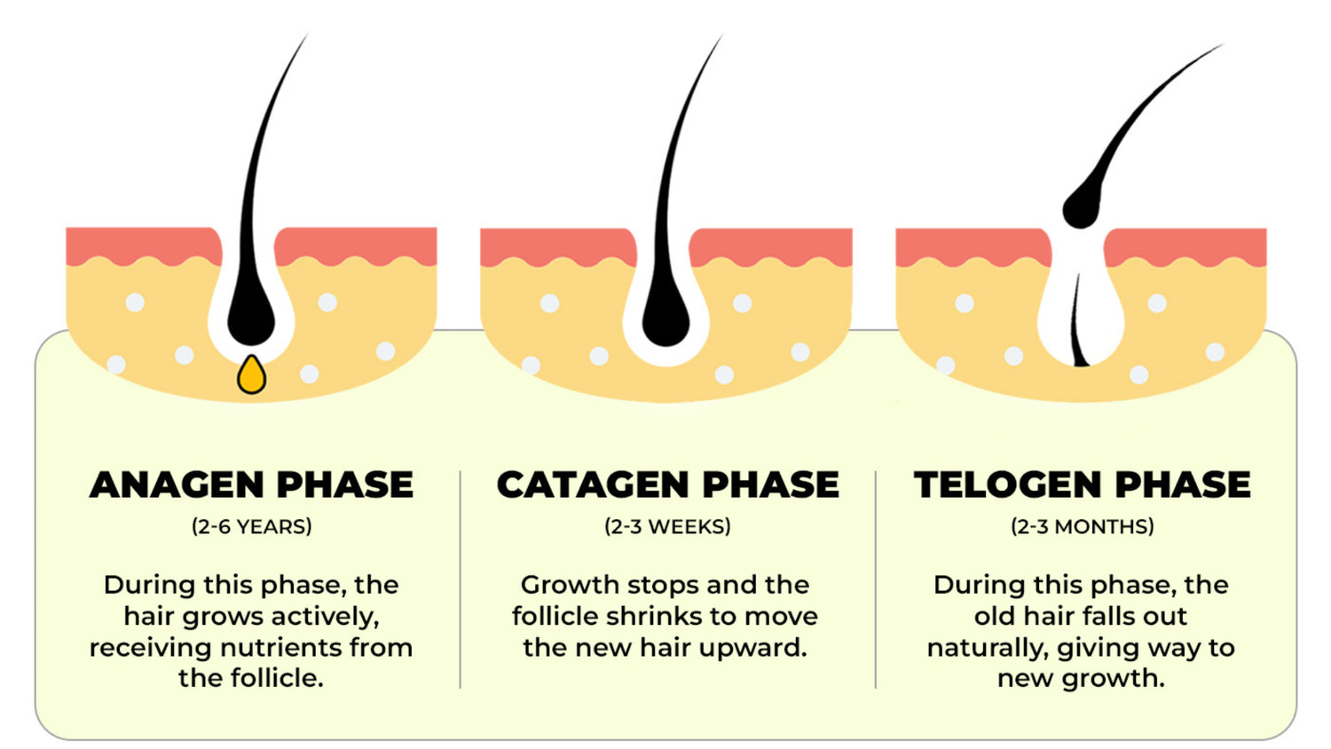 Once disrupted, the cycle becomes shorter and shorter, causing more and more hairs to go into the fall phase at the same time.