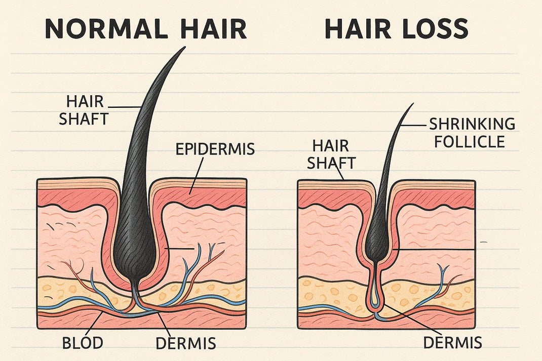 🔴 Impaired blood circulation - The follicle is literally "starving," which leads to weakening and eventually hair fall.