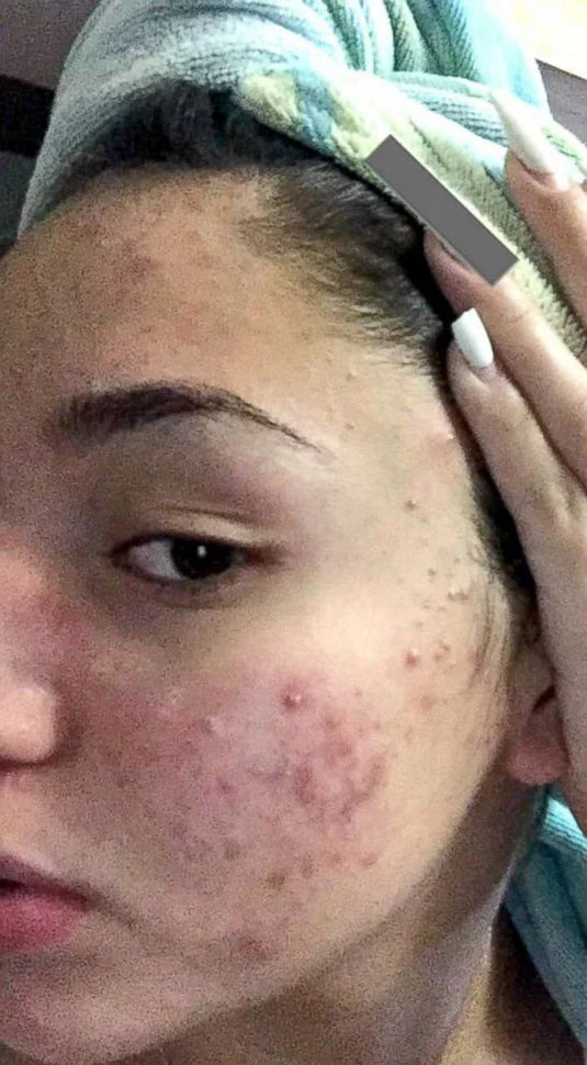 Maria 17, shared this photo of her severe acne before she cleared it up with a skincare routine featuring one organic products.