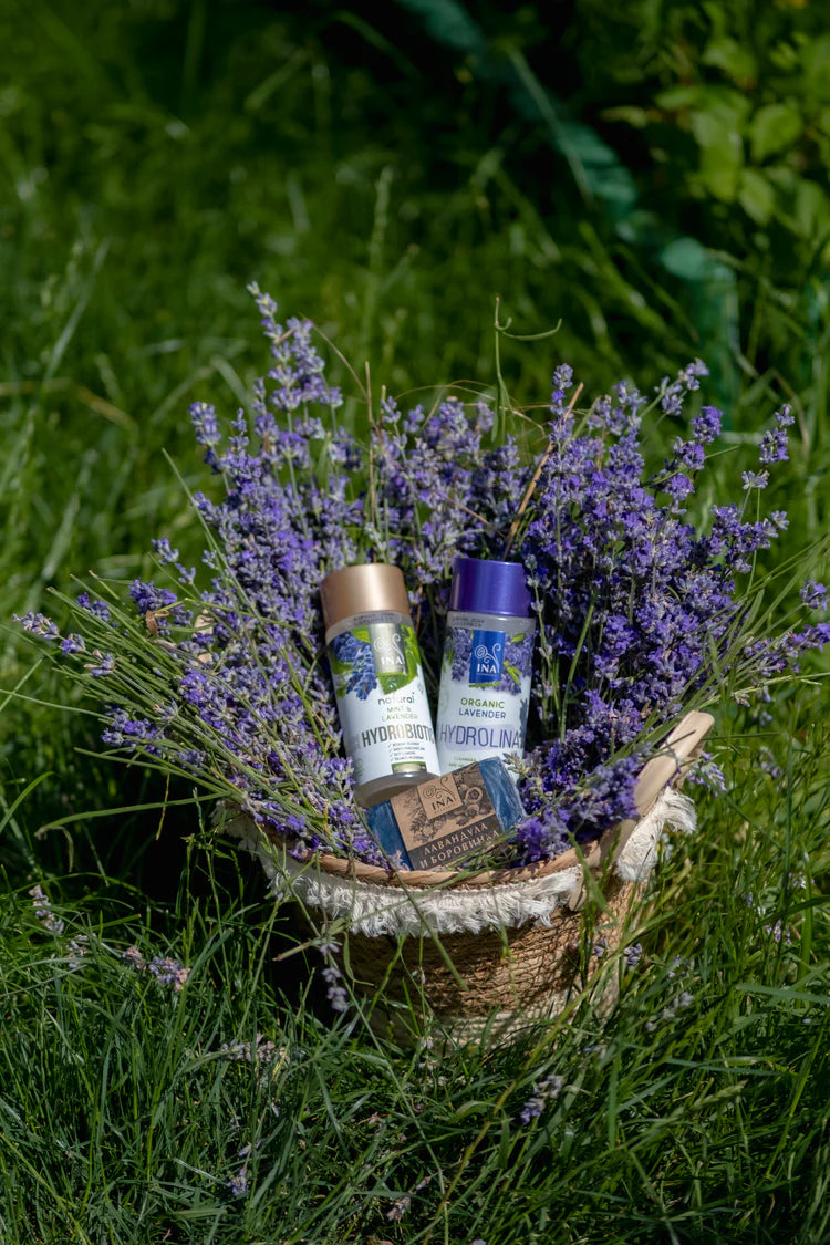 In the evening, Maria once again washes her skin with the Lavender and Blueberry soap, and then follows up by applying Hydrobiotic with Mint and Lavender using a cotton pad on the desired spots.
