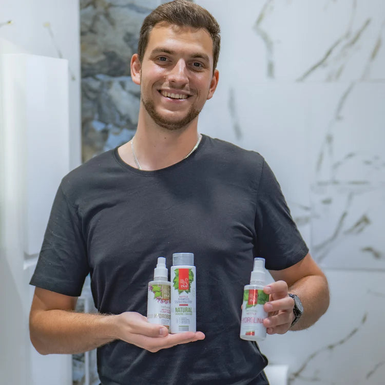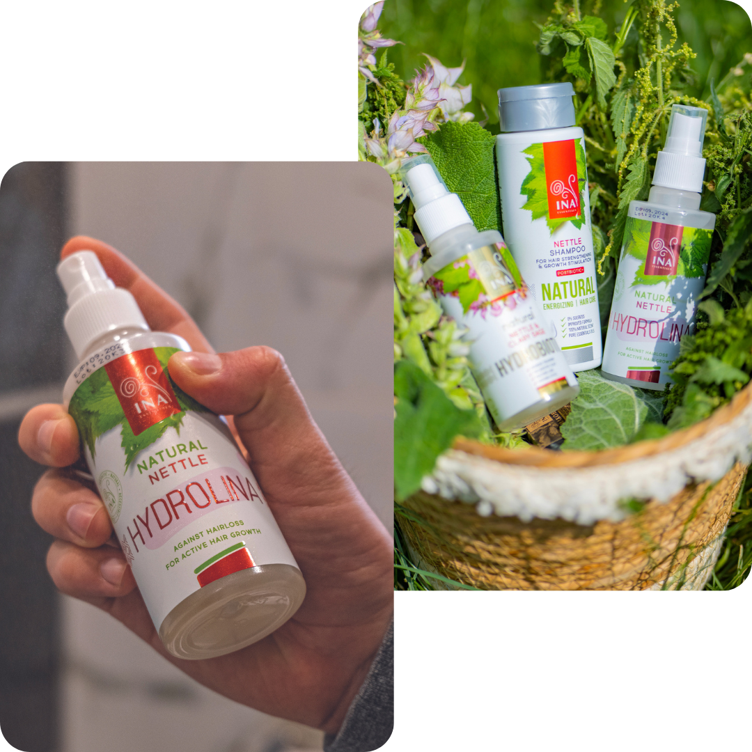 - Step 1: Start your day by applying our 100% Wild Nettle Water - Hydrolina. Its powerful properties stimulate hair growth, reduce oiliness and nourish hair from the roots. RoutINA™ Wild Nettle Water - Hydrolina strengthens hair follicles, promoting hair growth, keeping it fresh and vibrant.