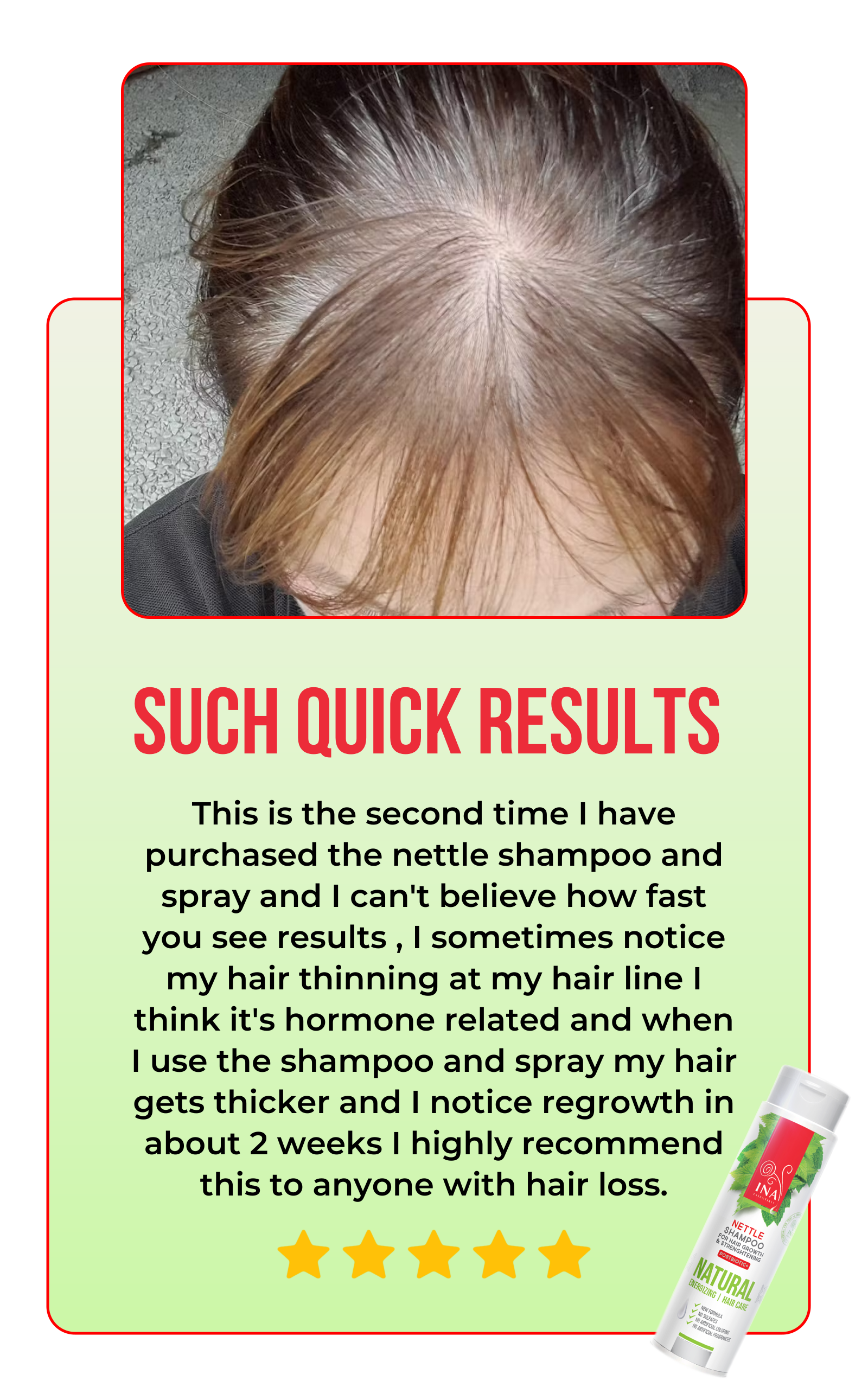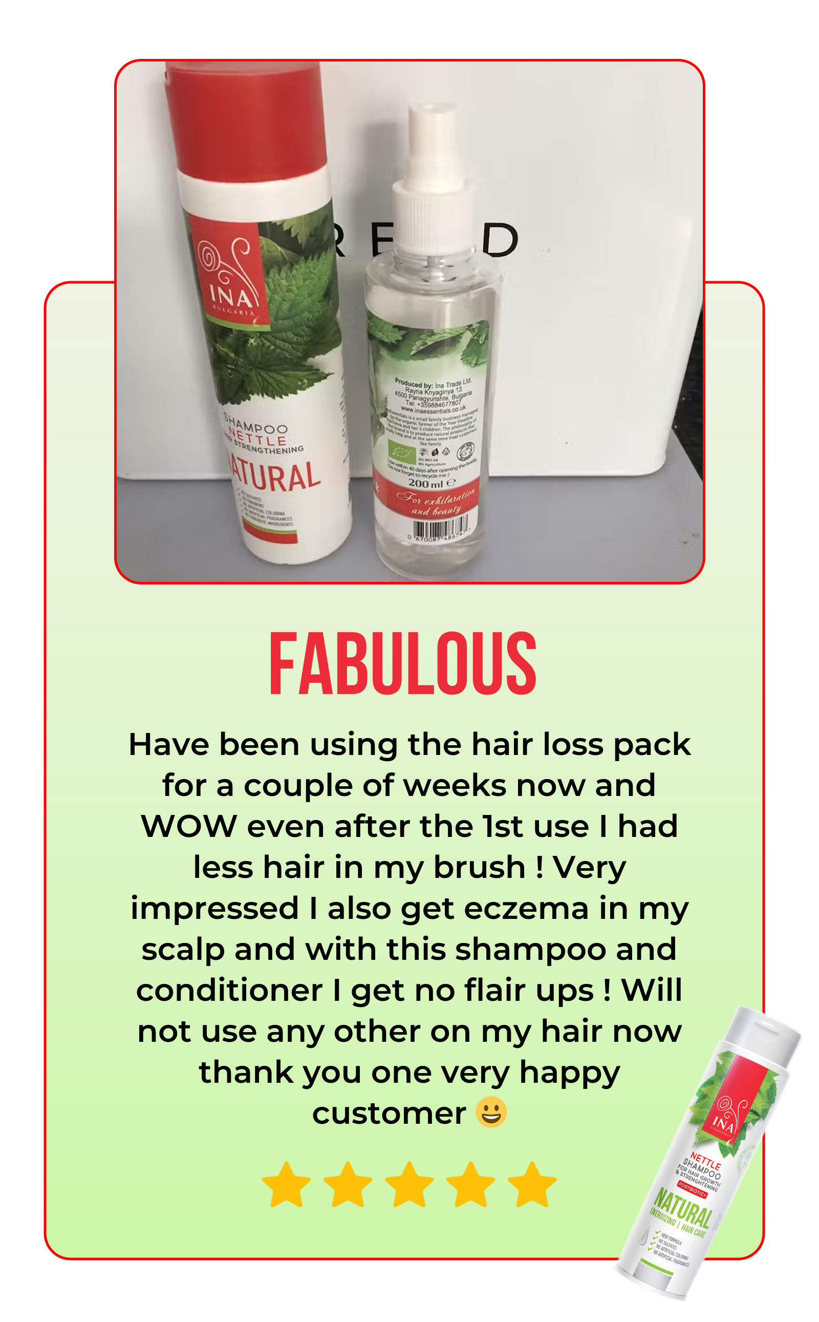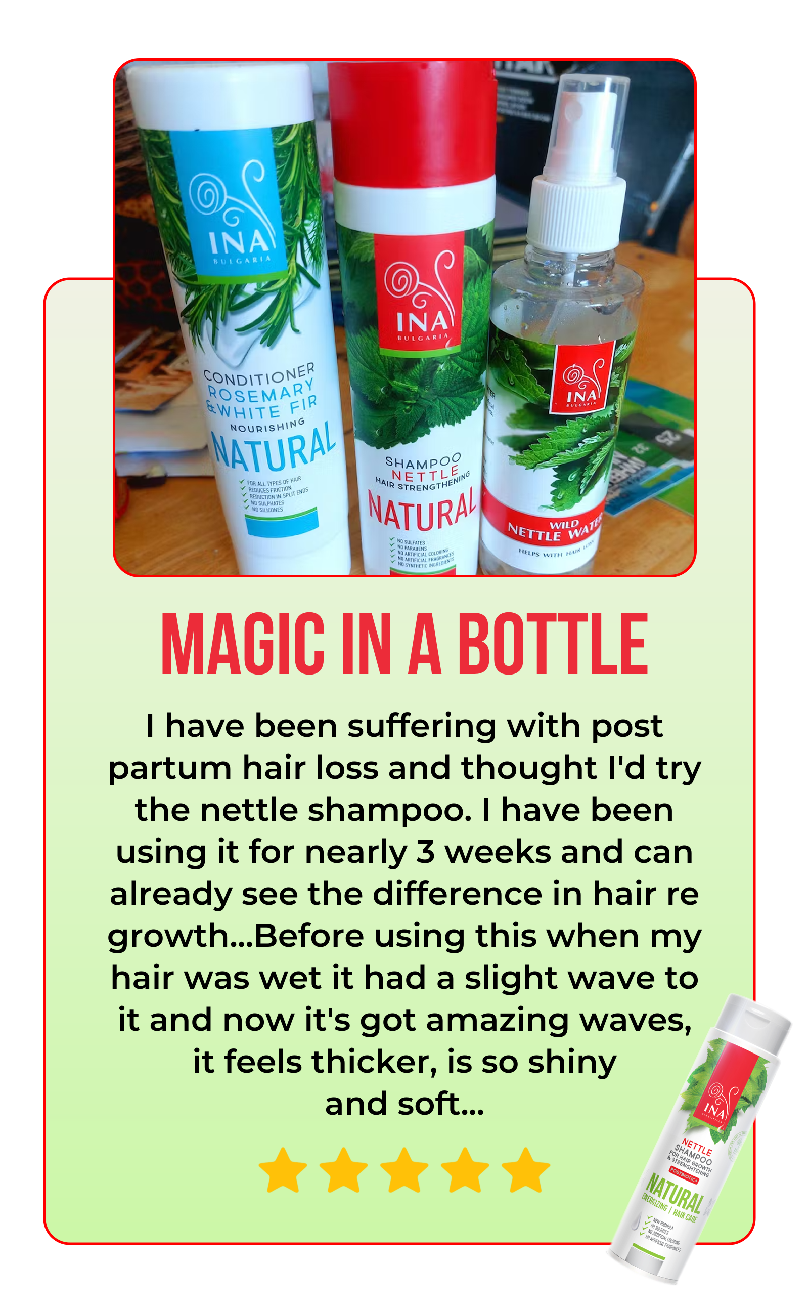 Natural Nettle Shampoo (200 ml) is more than just a pretty bottle. Its benefits and long-term effects are proven over time. You can read about the incredible results of our customers: HERE