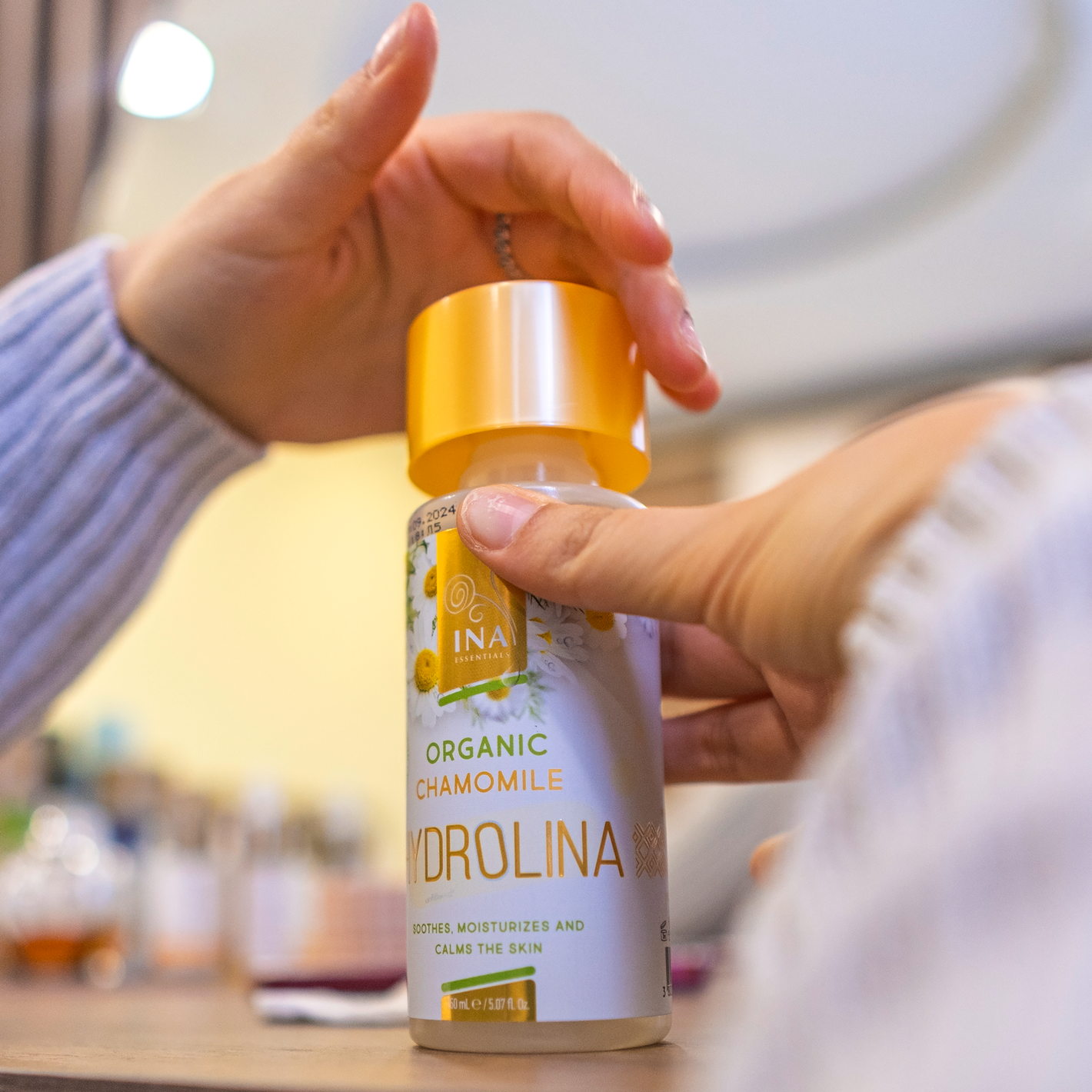 Transform your skin with Organic Chamomile Hydrolina, our family-made answer against eczema and irritated skin with soothing and regenerative effects. The perfect match for normal, combination, dry and sensitive skin.